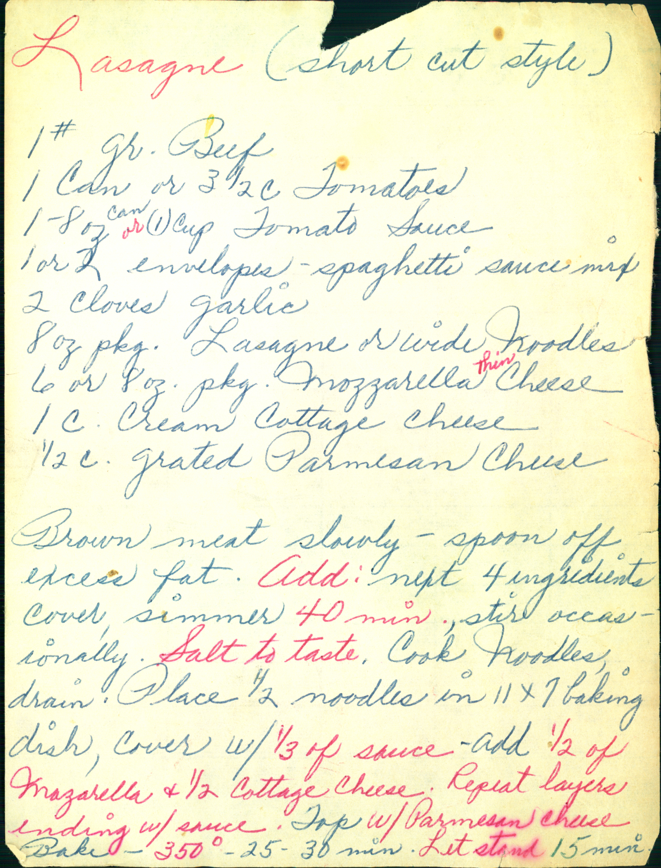 shortcut lasagne
